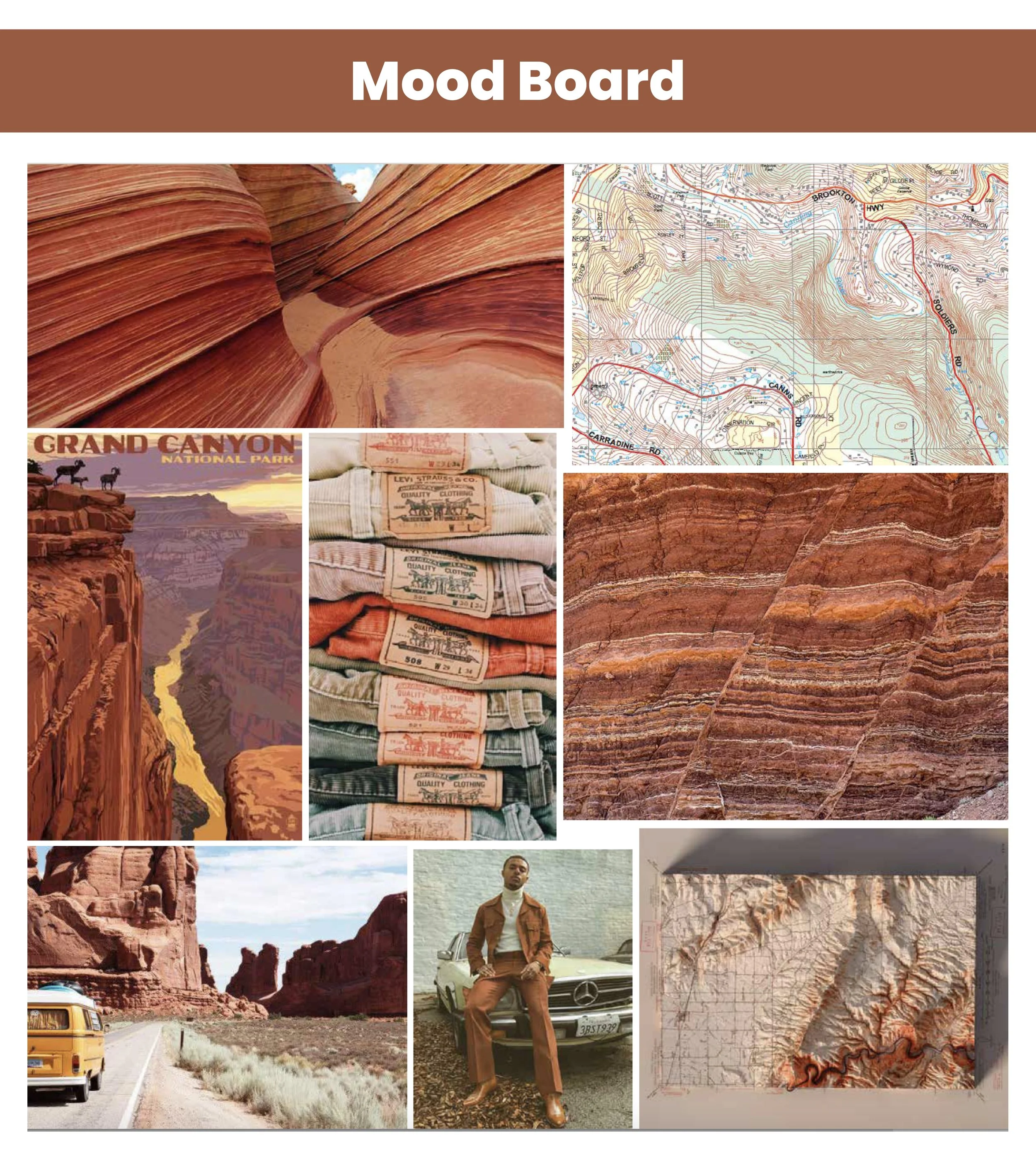 Drawing inspiration from the colors, textures, and sedimentary layers of the Grand Canyon, the garments translate natural landscapes into wearable design. Warm earth tones echo sunlit canyon walls, while layered textures mirror stratified rock formations.